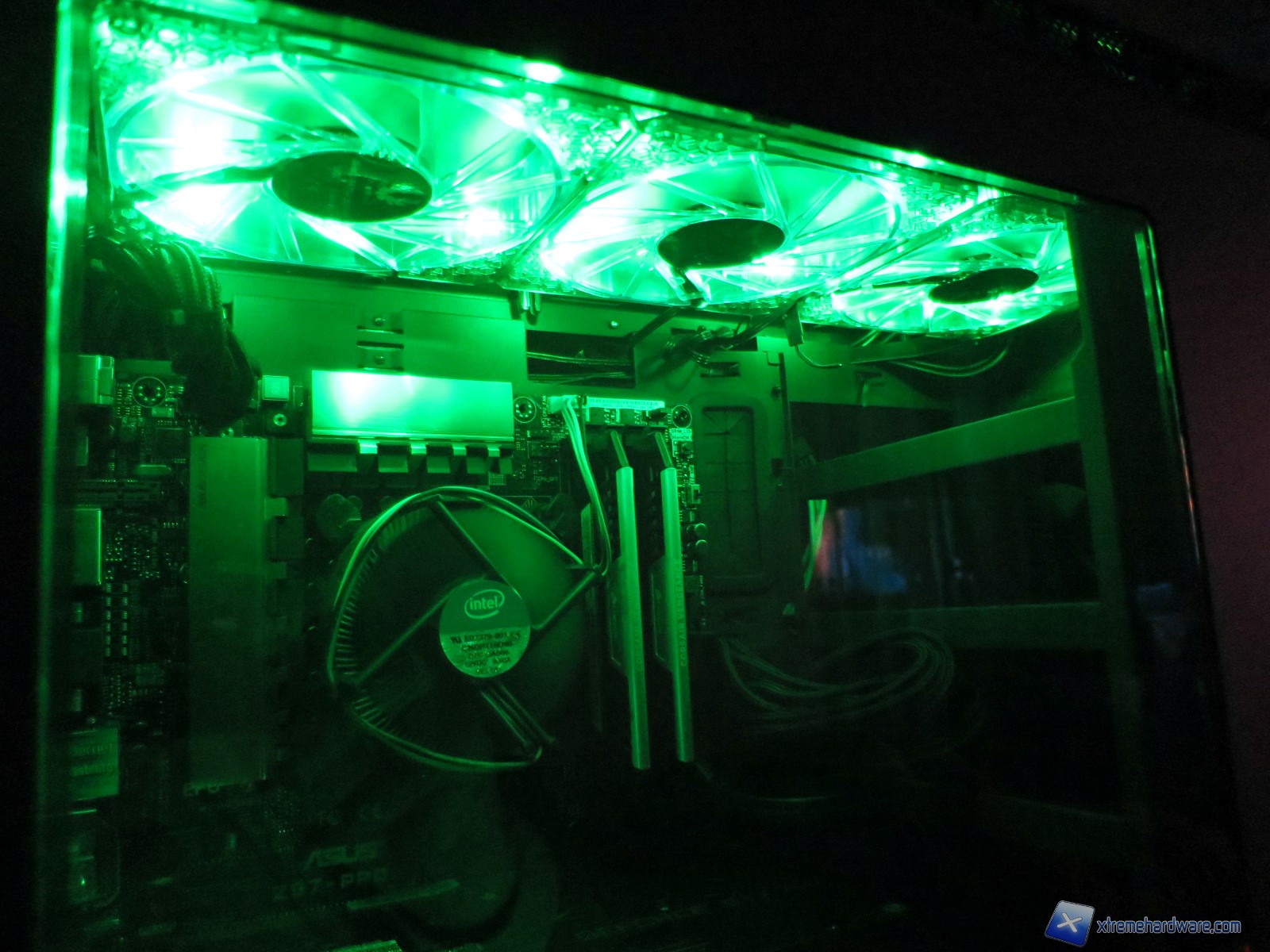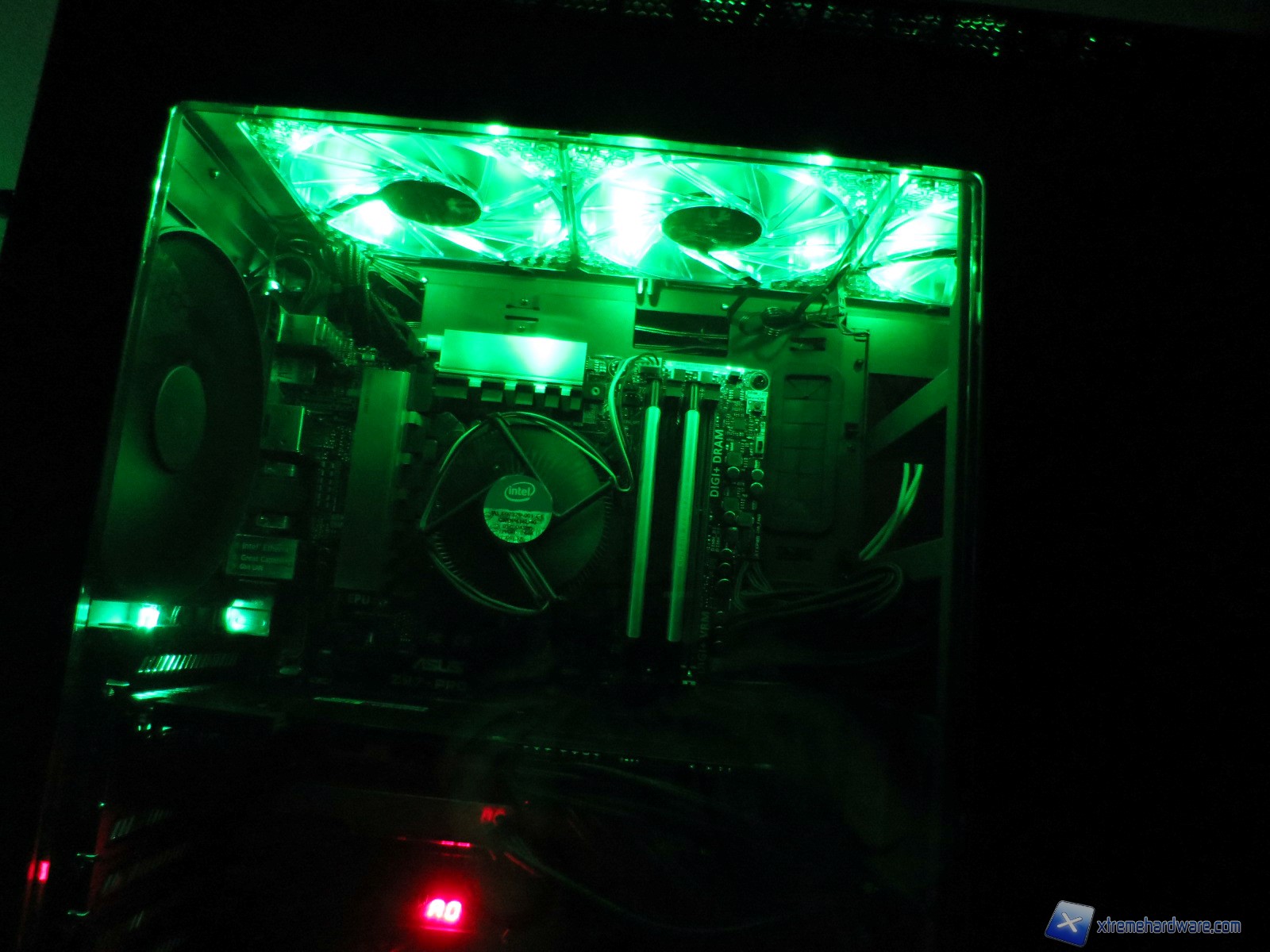Come vi avevamo detto, l’NZXT H440 Special Edition è dotato di LED di colore verde che aumentano l’effetto scenico del case specialmente e grazie anche al logo Razer posto nel pannello frontale. Per massimizzare l’impatto visivo abbiamo integrato nella nostra configurazione tre ventole a LED verde BitFenix Spectre Pro. Di seguito vi mostriamo le foto di notte.